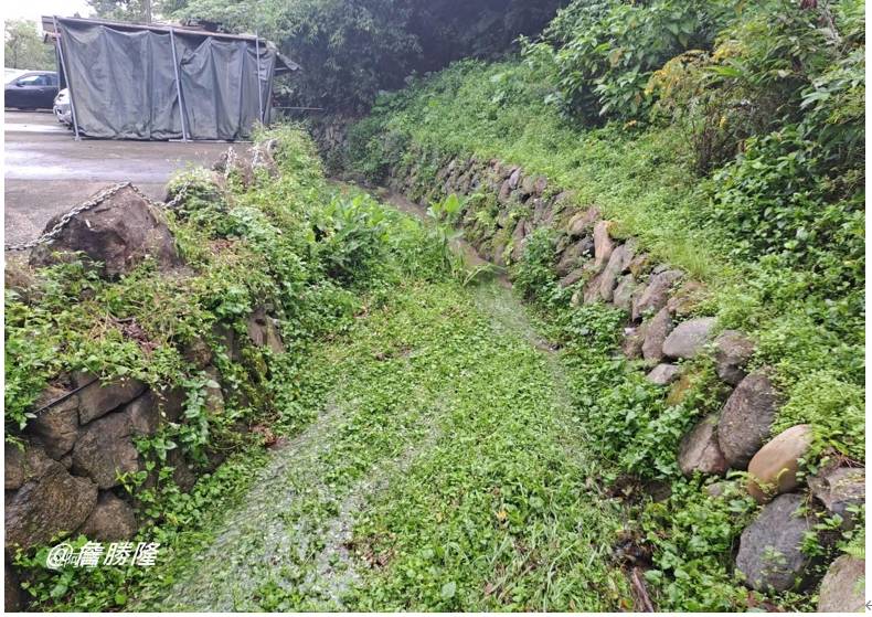 信義區擁有一脈靈秀的「四獸山」,每當鋒面過境,雲霧繚繞,虎、豹、獅、象四座山頭在煙雨中若隱若現,宛如仙靈之境。相傳清初鄭成功率軍北上,遠眺這四座形狀各異的分稜,驚嘆其神似天神駕馭的神獸,此地遂有了「四獸山」的美名。這條水圳的源頭,便隱身於象山與獅山山凹間的天寶聖道宮。